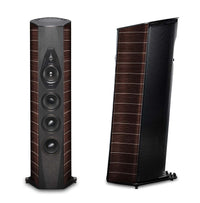 La Sonus faber Lilium est la grande soeur de la Cremonese, et descend jusqu'à 20hz dans le grave, grâce à son subwoofer dissimulé sous l’enceinte.